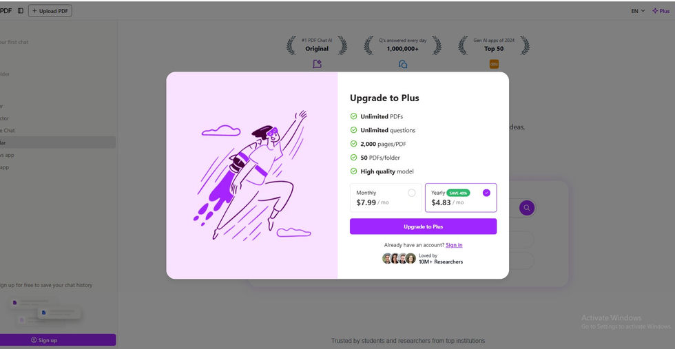 ChatPDF is an AI tool that allows users to interact with PDF documents conversationally. You can ask questions, extract information, and get summaries directly from PDFs, making research, reports, and document review faster and more efficient.
