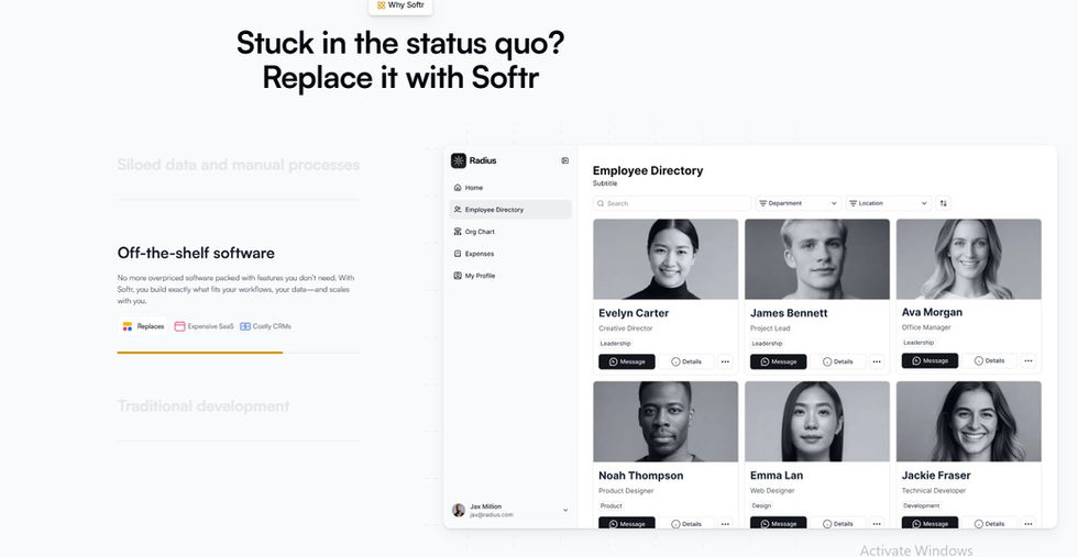 Softr is a no-code platform that enables users to build web apps, portals, and internal tools using data from Airtable or Google Sheets. It combines prebuilt components, integrations, and automation to let anyone create functional apps without coding.
